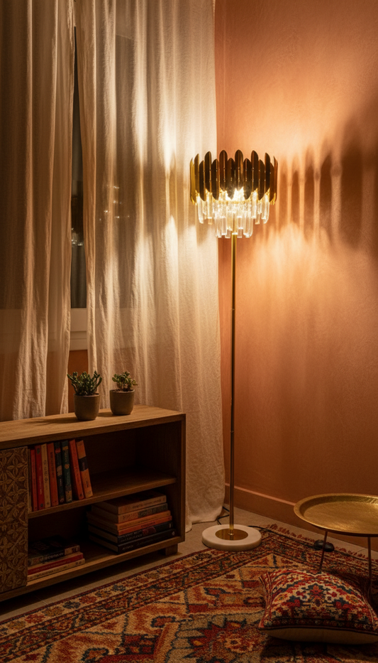 Lampadaire en Cristal Doré Avec Pied en Marbre
